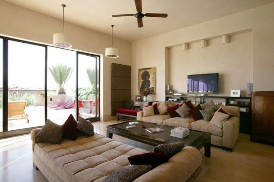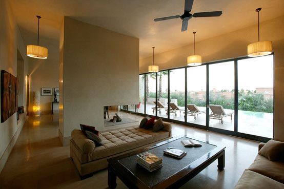 Belle villa contemporaine sur le golf d’Amelkis. Vu panoramique grace au salon  au 1er étage de la villa.